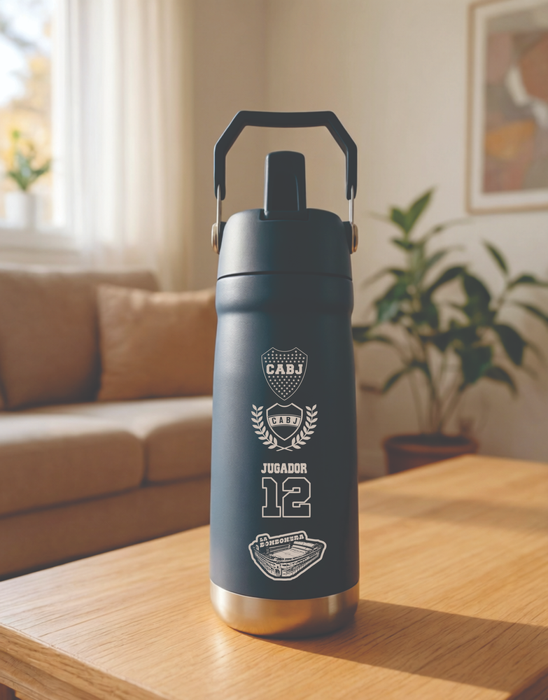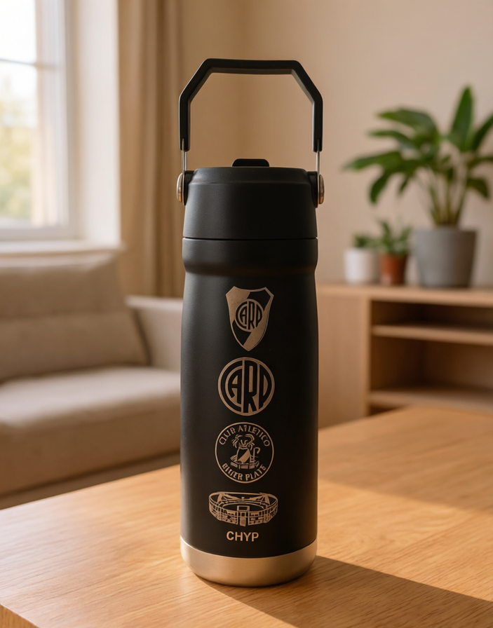 Una botella pensada para acompañar todo el día. Fabricada en acero inoxidable de doble capa con grabado laser de alta definicion, mantiene la temperatura de las bebidas por más tiempo.