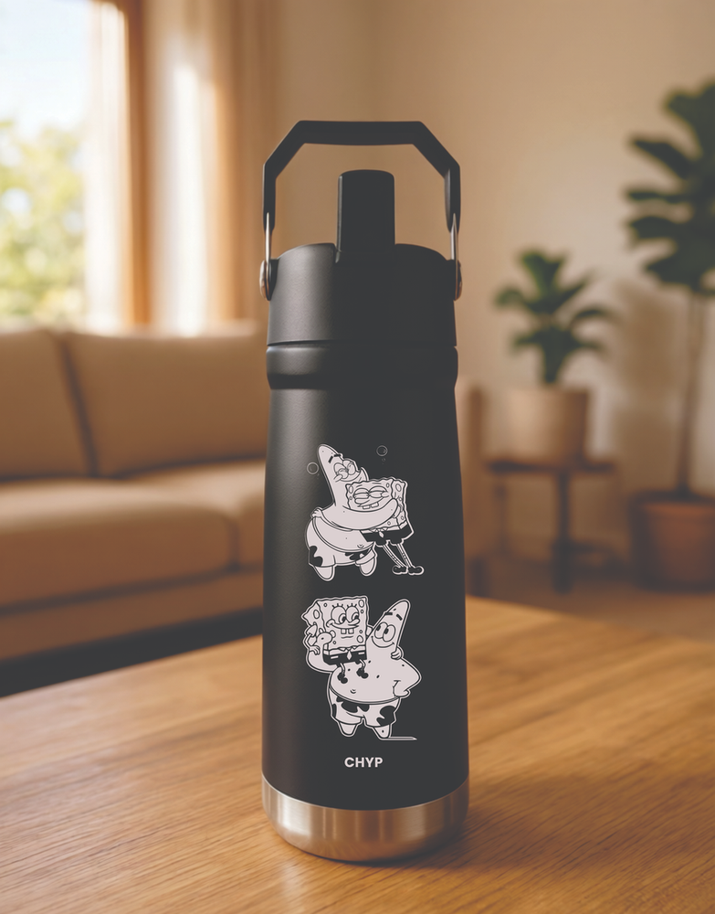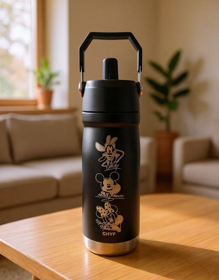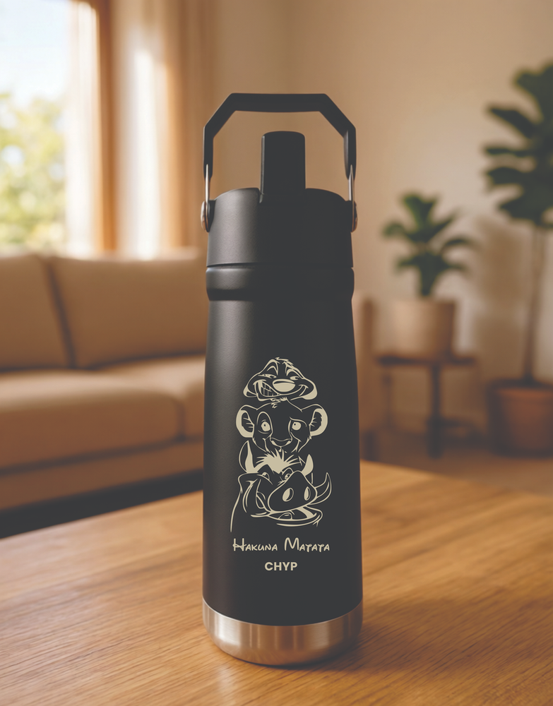 Una botella pensada para acompañar todo el día. Fabricada en acero inoxidable de doble capa con grabado laser de alta definicion, mantiene la temperatura de las bebidas por más tiempo.