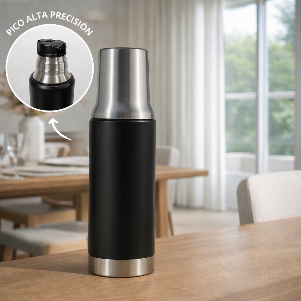 Incluye sistema de pico vertedor de alta precisión, ideal para un cebado cómodo y sin derrames. Su formato ergonómico y su excelente capacidad térmica lo convierten en el aliado perfecto para la rutina del mate.