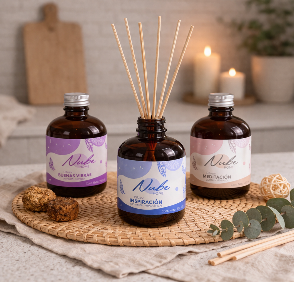 Desenroscar la tapa y colocar las varillas de manera que se sumerjan en las fragancias. Rotar las varillas dentro de los 3-4 dias.